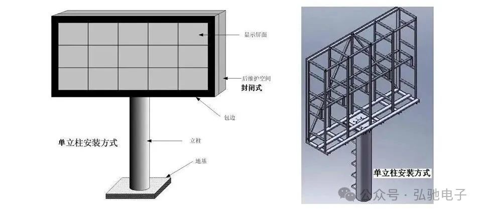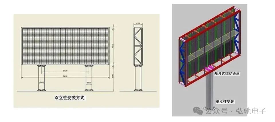 特點:單立柱(小屏)/ 雙立柱(大屏),可選敞開式 / 封閉式維護通道