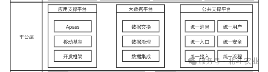 平臺(tái)層包括:應(yīng)用支撐平臺(tái)、大數(shù)據(jù)平臺(tái)、公共支撐平臺(tái)。