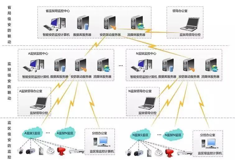 本方案以監(jiān)獄智能管理系統(tǒng)平臺(tái)為載體,前端可接入門(mén)禁設(shè)備、視頻監(jiān)控設(shè)備、考勤設(shè)備、巡邏設(shè)備、訪客設(shè)備等子系統(tǒng)設(shè)備(根據(jù)監(jiān)獄項(xiàng)目規(guī)模和規(guī)劃設(shè)計(jì)可擴(kuò)展報(bào)警、對(duì)講、廣播、入侵報(bào)警等系統(tǒng)設(shè)備,實(shí)現(xiàn)監(jiān)獄需求)