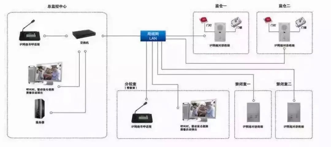 從科學(xué)管理的角度來(lái)看,一套完整的廣播系統(tǒng)可以完成所有對(duì)被拘留囚犯的思想教育活動(dòng)、晨操、通知和緊急廣播的所有要求。廣播系統(tǒng)應(yīng)分為倉(cāng)庫(kù)廣播和公共區(qū)域廣播兩部分。倉(cāng)庫(kù)廣播應(yīng)具有單一、集群、分區(qū)、所有倉(cāng)庫(kù)選擇廣播功能。公共區(qū)域廣播主要設(shè)置在操場(chǎng)、周邊,實(shí)施分區(qū)管理。