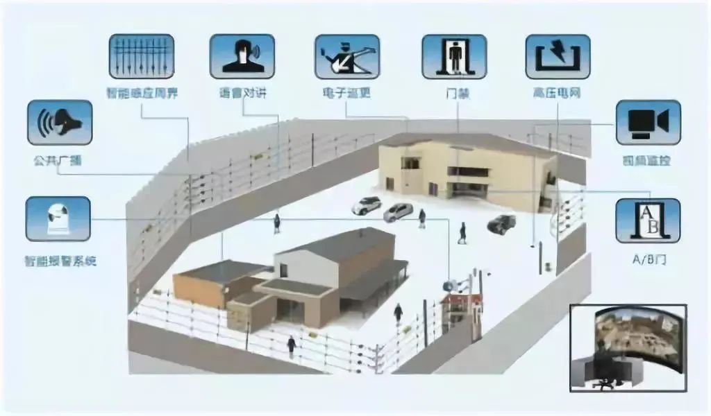 周界報(bào)警采用兩種防護(hù)技術(shù),在圍墻頂端安裝高壓電網(wǎng),在圍墻內(nèi)側(cè)地面布設(shè)主動(dòng)紅外雙光束探測(cè)器。各防區(qū)的報(bào)警信號(hào)都能與就地對(duì)應(yīng)的攝像機(jī)實(shí)現(xiàn)報(bào)警聯(lián)動(dòng),一旦發(fā)生警情,相應(yīng)攝像機(jī)圖像便會(huì)被自動(dòng)召回,優(yōu)先顯示在控制臺(tái)監(jiān)視器上。